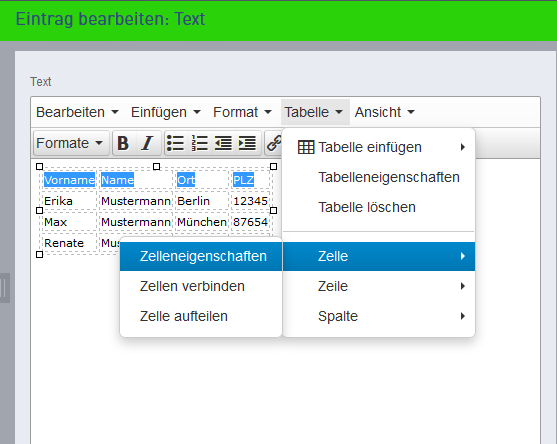 Additor® verwendet einen sogenannten Rich-Text-Editor, mit dem man einfach Textinhalte erstellen kann. Die Bedienung erinnert dabei an bekannte Textbearbeitungsprogramme wie MS Word. Während diese Programme primär zum Erstellen von Print-Dokumenten gedacht sind, erfolgt in additor® eine reine HTML-Ausgabe zur Darstellung im Web. Damit setzt die HTML-Spezifikation die Rahmenbedingungen für die Texterstellung. Das betrifft insbesondere Tabellen.